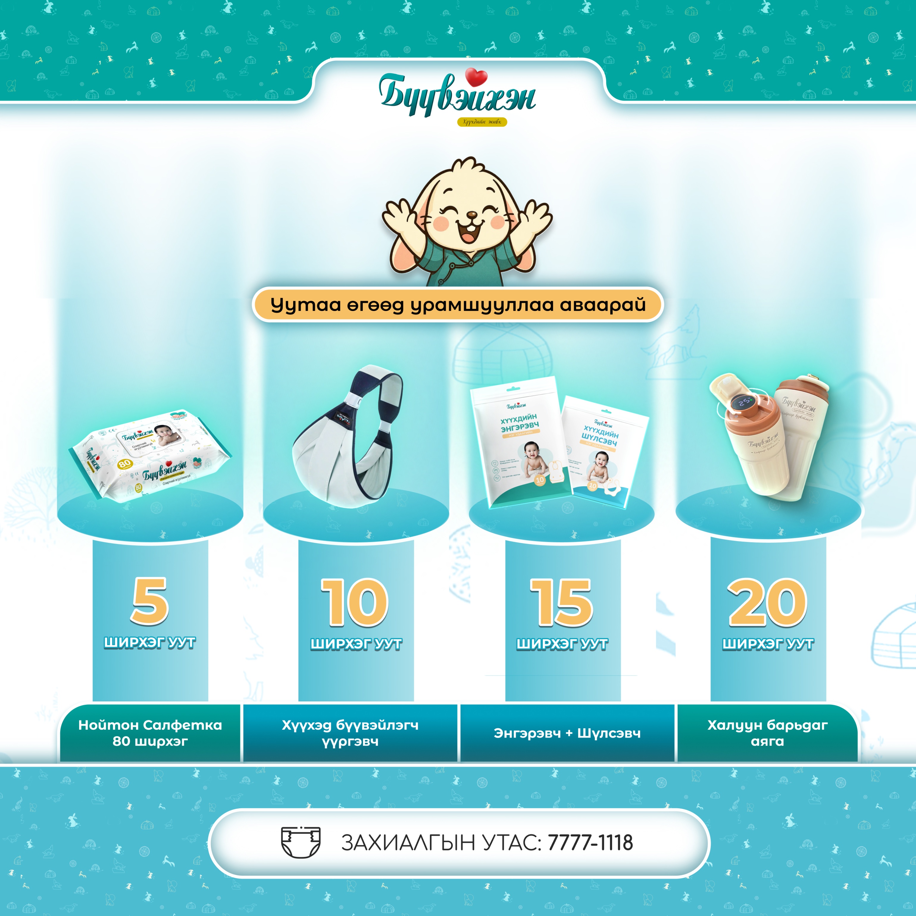 “БҮҮВЭЙХЭН” живх нь Монгол хүүхдийн биеийн болон уур амьсгалын онцлогт тохируулан олон улсад хүлээн зөвшөөрөгдсөн материал, орц найрлага бүхий ОЮУНЫ ӨМЧӨӨР БАТАЛГААЖСАН үндэсний брэнд юм. Хүүхдийн арь